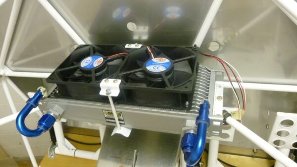 Nebst Heizelement mit Lüftern wird auch noch das Bremsölreservoir eingebaut.